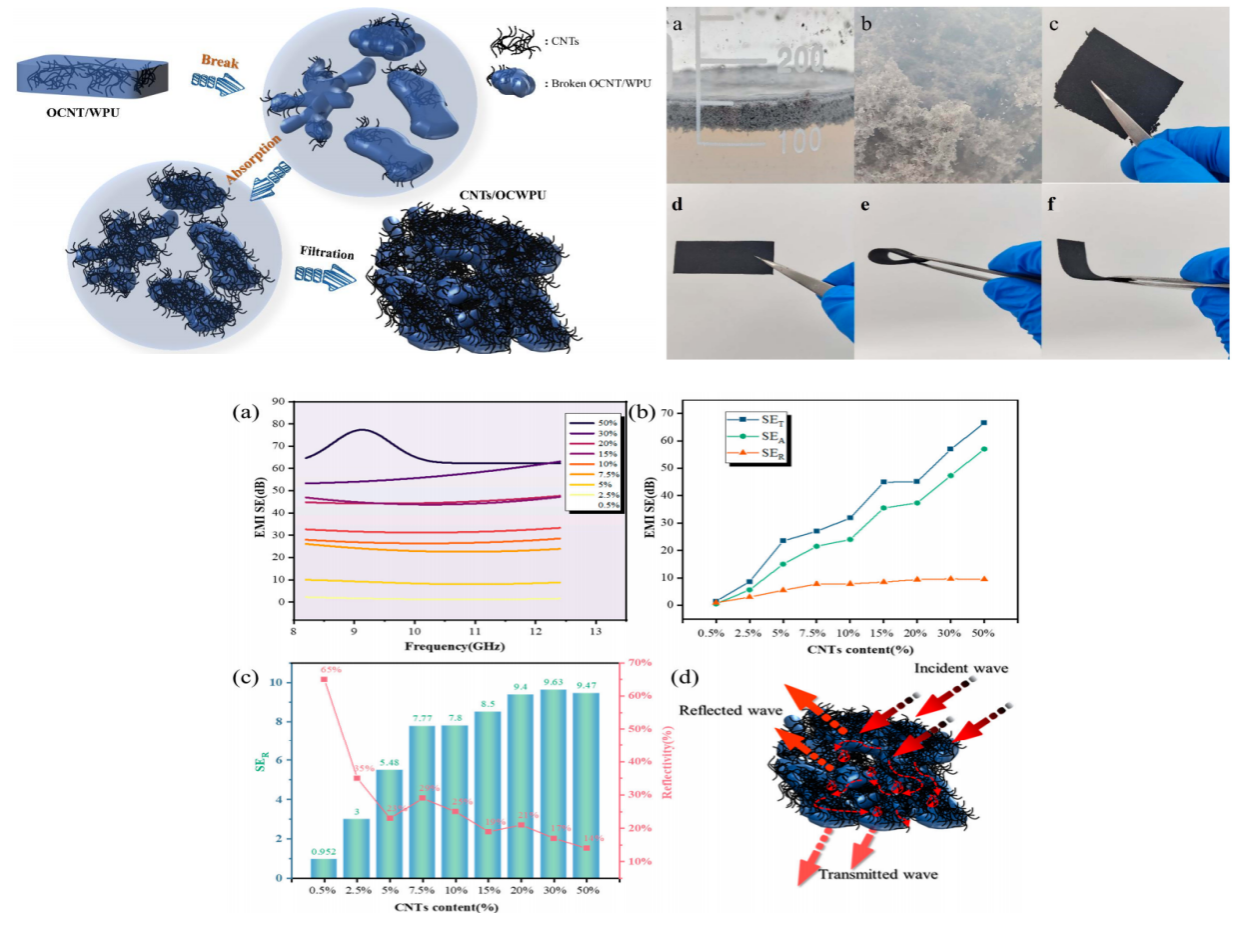 6)High electromagnetic shielding effect of carbon nanotubes/waterborne polyurethane composites prepared by "break-adsorption" method. Materials. SCI三区
