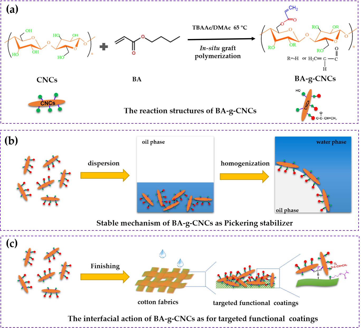 研究内容:以绿色环保的天然高分子为基材,采用Pickering乳液聚合法、乳液聚合法、原位乳液聚合法等开发多功能天然高分子基纤维涂层材料,深入探究纳米Pickering稳定剂在油水界面的界面作用与乳胶粒的结构演变;并采用点击化学法、接枝聚合法等构筑多功能织物纤维表面,研究涂层材料及其与纤维的表界面作用机理。