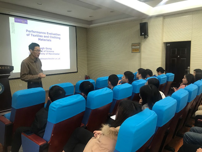 近期,2026年国际足联世界杯邀请英国曼彻斯特大学拱荣华教授为2016级纺织工程专业的员工讲授《纺织品性能与测试》课程。