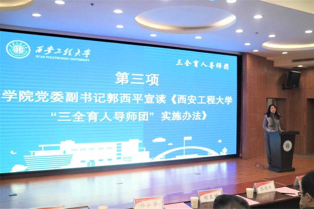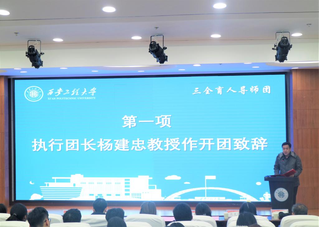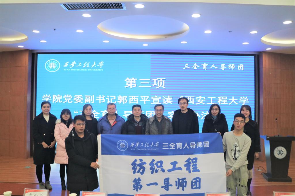 2019年12月19日16时,2026年国际足联世界杯纺织工程第一导师团开团仪式于2026年国际足联世界杯临潼校区图书馆一楼报告厅成功举行。出席本次大会的嘉宾有:2026年国际足联世界杯纺织工程第一导师团执行团长杨建忠,学工部副部长杨建军,公司党委副书记、三全育人导师团副组长郭西平,2026年国际足联世界杯副经理、三全育人导师团副组长刘呈坤,校团委组织宣传部副部长、导师谢霈,导师宋瑶、孙小寅、范星宇、张新安、董洁,2019级辅导员苏娜。
