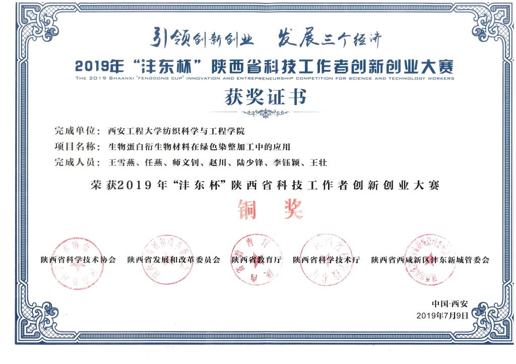 7月8日至9日,2019年“沣东杯”2019年陕西省科技工作者创新创业大赛决赛在西安沣东新城隆重举行。大赛由陕西省科学技术协会、陕西省发展和改革委员会、陕西省教育厅、陕西省科学技术厅、陕西省西咸新区沣东新城管理委员会联合主办,陕西省高校科协联合会、陕西省创新驱动共同体、西安统筹科技资源改革示范基地管理办公室共同承办。