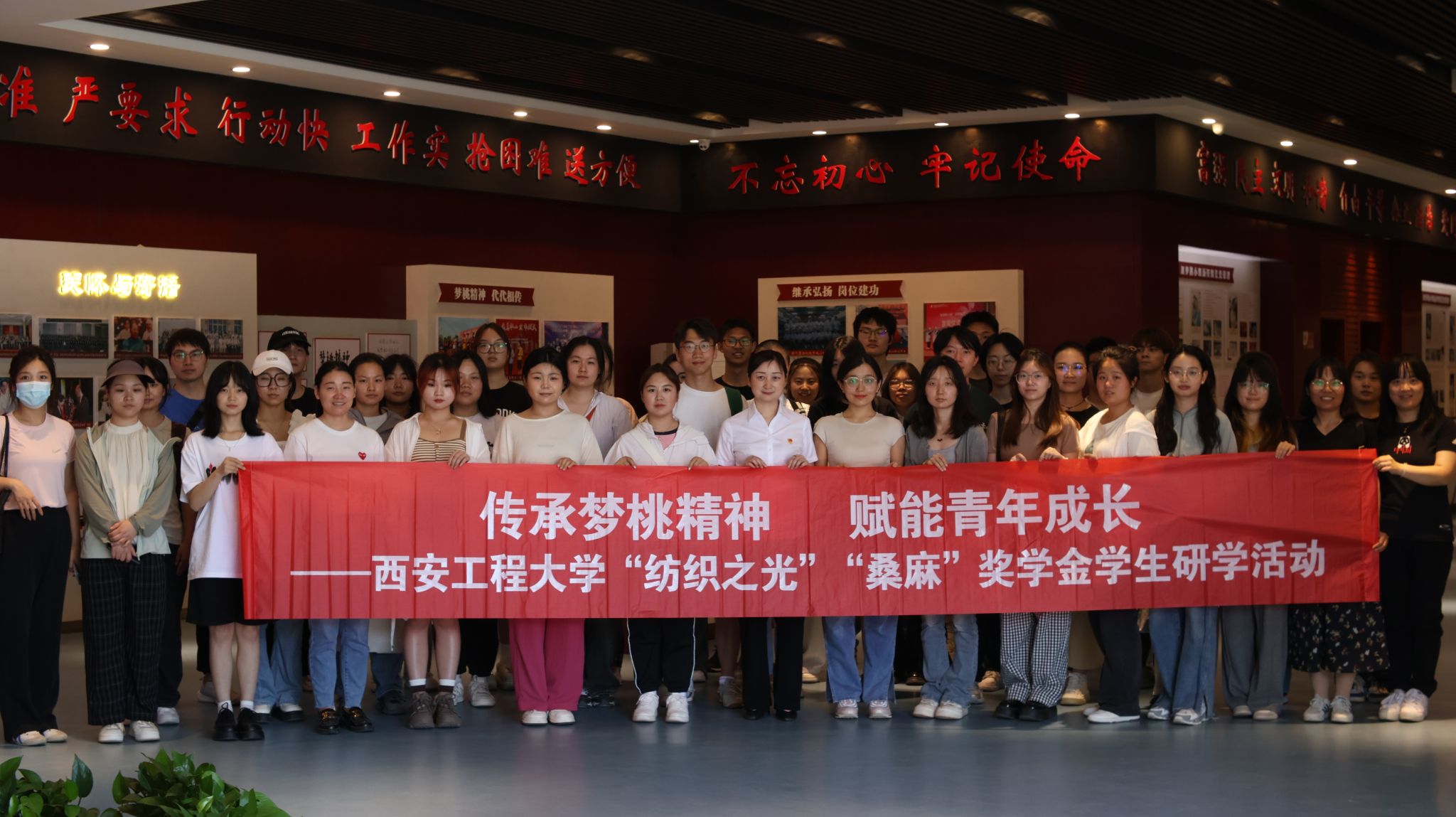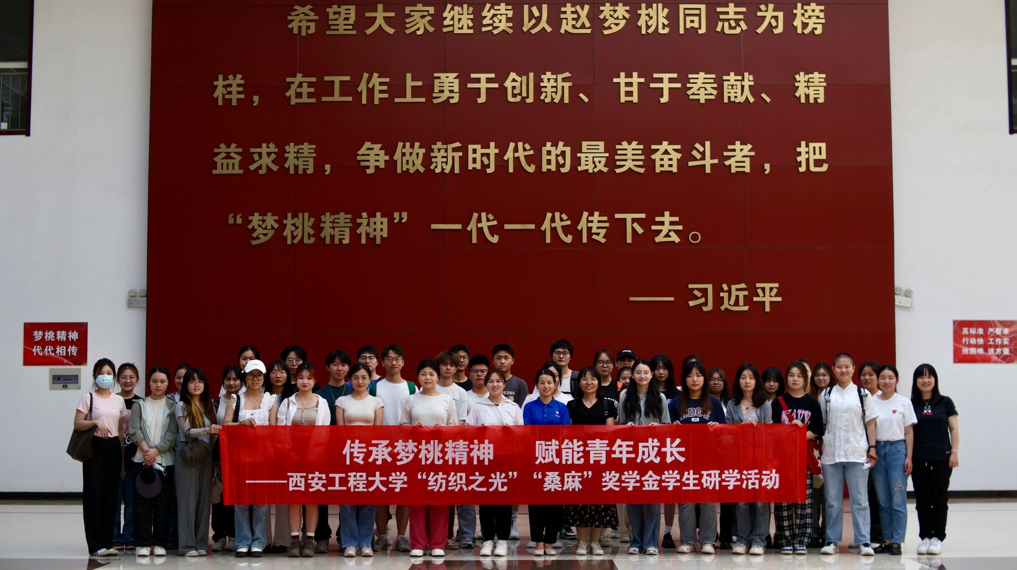 为进一步促进获奖受助员工成长成才,进一步提升公司资助育人工作成效,5月22日,由员工工作部(处)主办、2026年国际足联世界杯承办的纺织精神传承系列活动之一—传承梦桃精神、赋能青年成长“纺织之光”“桑麻”奖学金员工研学活动赴咸阳纺织集团有限公司及赵梦桃纪念馆开展。学工部资助中心王逢云、华宁和纺织公司辅导员刘要带领获奖学金员工40余人跟随梦桃足迹,深入学习传承梦桃精神。