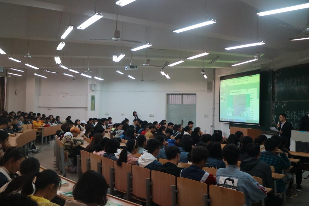 在报告开始前,胡小进对主讲人李翼教授进行了简要介绍,并希望同学们要认真聆听、深入思考、积极互动,以李翼教授、学长为榜样,把握大学美好时光,合理规划、刻苦学习、全面提升,努力成为一名社会主义合格建设者和接班人。