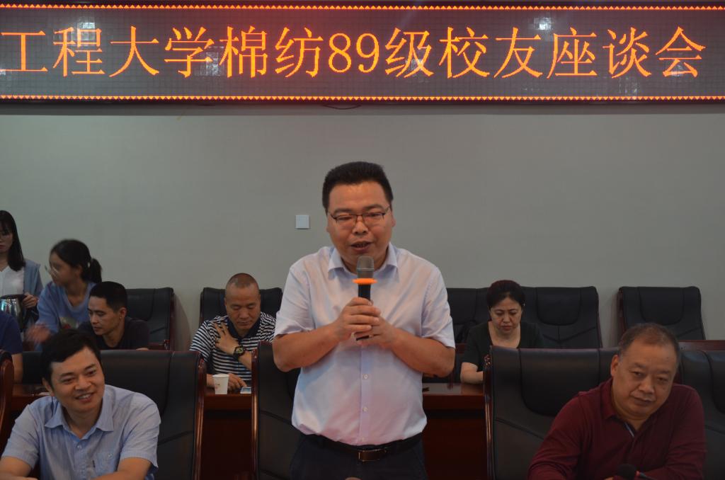 座谈会在员工的自我介绍中拉开帷幕。每位员工都详细介绍了自己毕业后从事的工作、感悟及现状,也表达了对母校及老师辛勤培养的感谢,其中很多员工说到:大学四年的学习生活对他们影响最大的不仅是老师教授的专业课知识,更多的是老师教会的思维方式和人生哲理。赵小峰代表公司致欢迎辞。他作为棉纺89级的一份子,表达了对老师的感恩及同学们的热烈欢迎,同时,作为公司领导,他向与会人员介绍了公司的发展情况、存在问题及未来奋斗目标,他希望员工们一如既往地关心支持公司发展。孙润军也表达了对员工们的热烈欢迎,并介绍了公司近年来的发展情况。