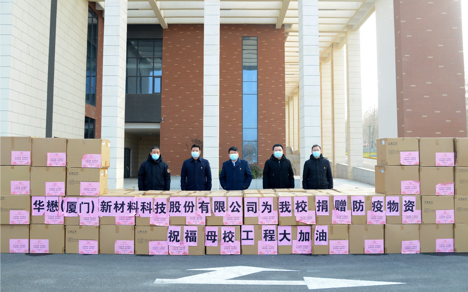 疫情肆虐,人间有爱。员工们的爱心和善举不仅增添了母校师生战胜疫情的信心,更是将无数的温暖和爱心播种在了全校师生的心田,并用实际行动诠释了“一方有难、八方支援”的家国情怀。在疫情期间,员工企业更是勇于担当、奉献爱心、守望相助、情暖校园,谱写了新时代企业的社会责任与大爱,彰显了仁爱之心和守望相助的高尚情怀,增强了我们打赢这场疫情防控阻击战的信心!在此,向张初全员工和华懋(厦门)新材料科技股份有限公司表示诚挚的感谢和崇高的敬意。(撰稿:孟祥福 审稿:仝燕 王晓先)