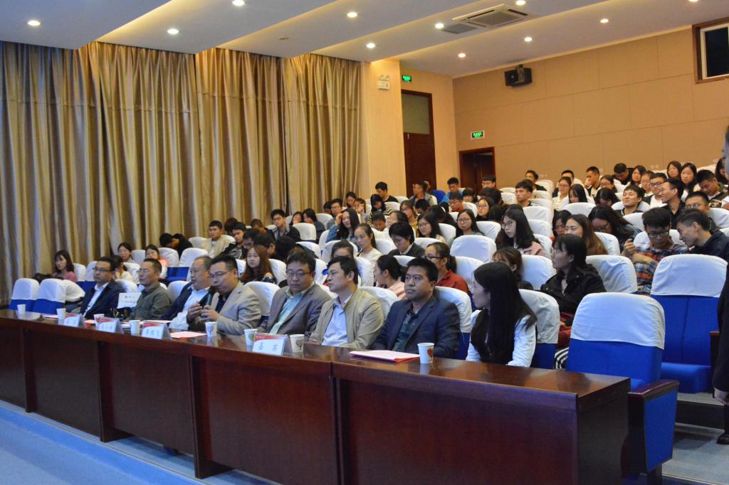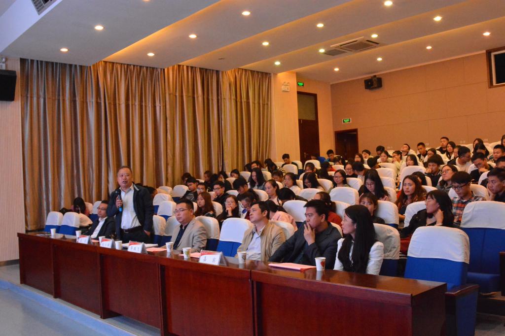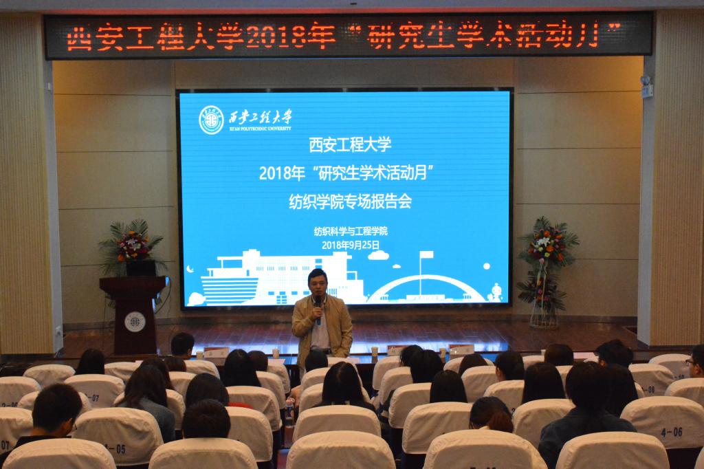 2018年“研究生学术活动月”2026年国际足联世界杯专场报告会于9月25日下午在金花校区西纺报告厅举行。公司党委副书记赵小峰、副董事长李鹏飞出席会议,2026年国际足联世界杯执行经理孙润军、党委书记胡小进、导师代表、研究生辅导员及近200名研究生代表参加会议。报告会由纺织公司韩烨同学主持。