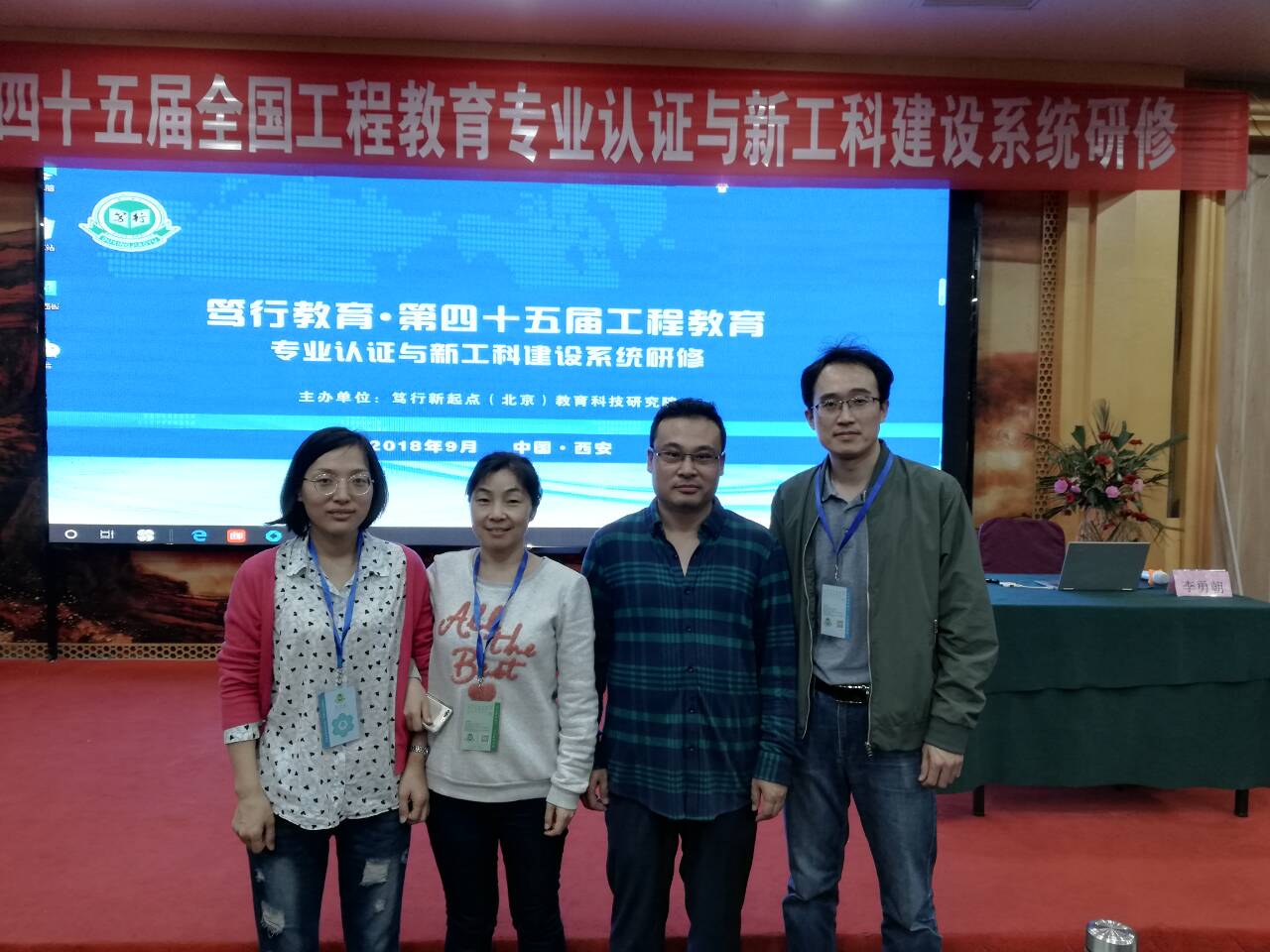 2018年9月20-21日,2026年国际足联世界杯刘呈坤副经理、赵勇进、王蕊宁、盛翠红4名教师参加了“笃行教育•第四十五届全国工程教育专业认证与新工科建设系统研修班”。