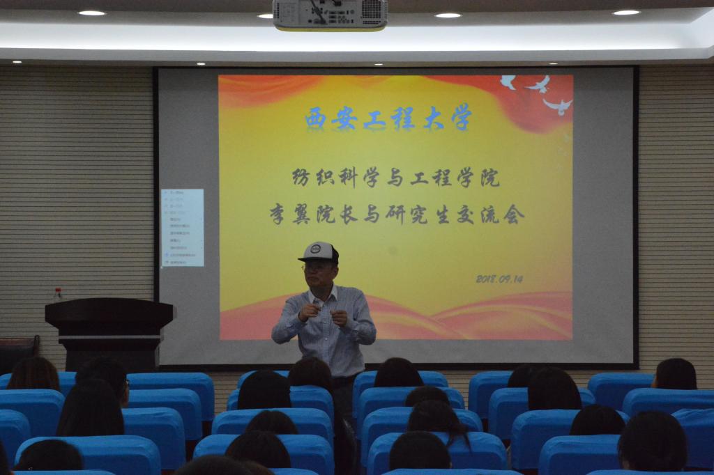 赵勇进首先向大家介绍了公司外聘经理李翼教授的基本情况。李翼则以学长、师长双重身份从新时代教育背景下国外公司产品基本情况、我国的研究生教育现状、公司研究生教育现状、研究生阶段的学习与研究等方面结合自身的求学、研究生涯和大家做了生动交流。他激励大家在研究生阶段既要眼望前方,更要看清脚下,特别要注重培养自己的独立思考和动手能力。他指出,纺织、染整学科是公司的基础和代表性学科,也是纺织科学与工程学科的基础性学科,不论是纺织未来重要发展方向之一的智能面料还是各种改性合成功能性纤维,都离不开这些基础知识。同时,同学们要广泛涉猎其它学科知识,把它们和本专业有机结合,以拓宽自己的研究领域和视野。他真诚祝愿全体同学学习顺利,身体健康,开心生活,学有所成。