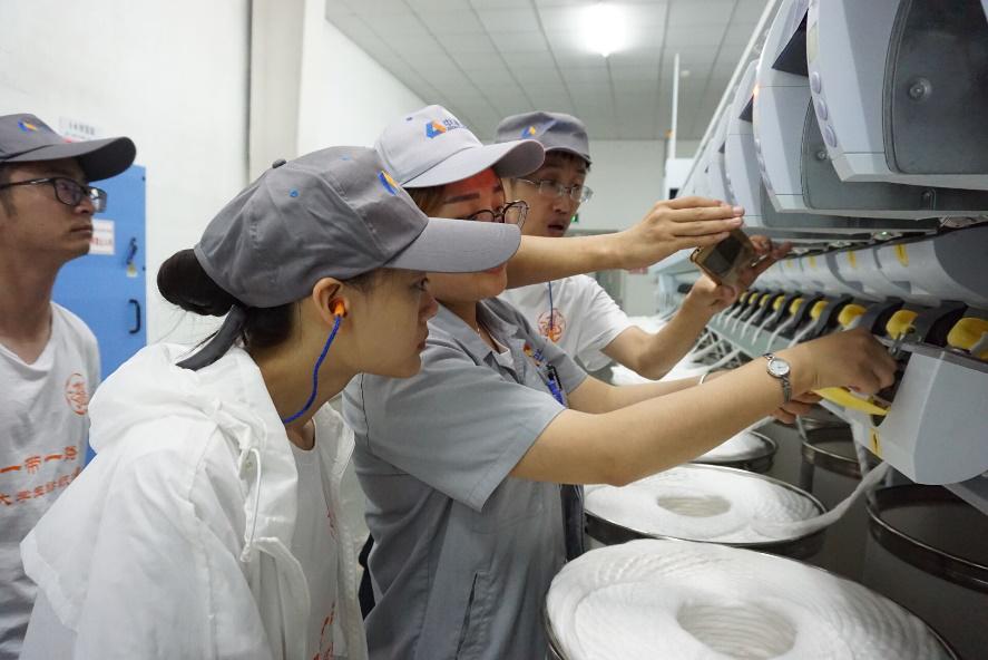 公司党委副书记郭西平带队2015级纺织工程专业8名优秀本科生一同前往参加第三届“莘莘学子看港城”活动。活动主要为参观张家港市的相关产业环境,以及发展状况。第一天参观张家港市城市展览馆。参观张家港市永联小镇、暨阳湖生态园、步行街、城西新区。晚上与政府部门进行“我与港城有个约会”互动交流。第二天分专业活动参观了中国华芳集团、江苏银河电子股份有限公司、永钢集团等数十家国内500强企业。并回访了公司2011届纺织工程研究生优秀员工李培光学长,现就职于维克罗(中国)搭扣系统有限公司MIGG车间主管。李培光学长根据就业创业也对学弟学妹提出了几点建议和希望。