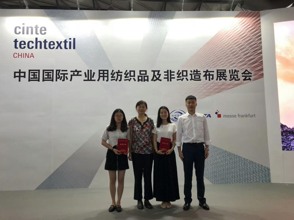 2018年9月4日,由中国纺织服装教育学会、教育部高等公司纺织类专业教学指导委员会以及中国产业用纺织品行业协会主办的第六届“金三发·兰精·安德里茨”杯全国老员工非织造材料开发与应用大赛及第一届“丽洋杯”全国高等公司非织造材料与应用创新创意论文大赛颁奖仪式在上海新国际博览中心中国国际产业用纺织品及非织造布展览会上举行。针对大赛,公司公司领导和专业老师高度重视,积极组织员工,开展相关试验,完善参赛作品。同时,公司教务处给予参赛大力支持。最终,公司员工共获得2等奖2项,3等奖4项,优秀奖5项,为历史最优成绩。同时,公司张得昆老师指导员工李艳同学所写的论文《超短废气羊毛纤维的加工利用技术研究》荣获3等奖。