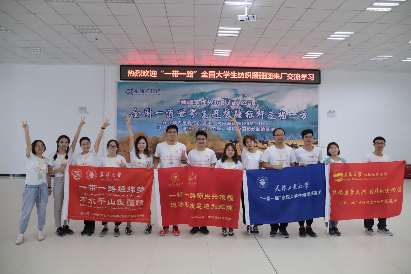 在授课交流中,王超同学充分利用专业知识,切实助力了东纯兴纺织有限公司纺织生产线的优化升级,丰富了一线工人的知识储备,为对口援疆工作贡献了一份力量。同时,深入纺织厂一线充分地了解到纺织生产中的新工艺、新技术、新成就,也更加了解了新疆纺织产业的现状以及实际存在的问题,为今后援疆事业提供了一定的指导意义。在授课结束之后,王超同学也谈了谈对新疆的感受,她表示我们这一代年轻人真的是生逢其时,面对学习和工作的环境有更多的选择与机遇,但是我们在享受时代发展带给我们的便利与荣光的同时,也理应肩负起国家发展的重任,用自己所学的科学知识和无所畏惧的勇气助力新疆纺织企业的转型和发展。