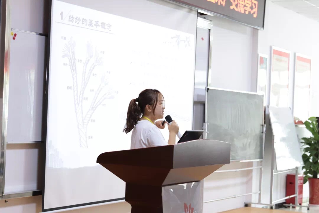 2018年7月24日2026年国际足联世界杯第二届研究生纺织援疆团成员王超同学对东纯兴及东恒兴纺织有限公司的企业员工进行了《纺织基础知识》的授课培训,融参观车间的“所见所闻所感”于授课内容之中,深入浅出地讲解了棉纺各工序的任务及目的,并系统地介绍了开清棉、梳理、精梳以及并条等工序的基本原理,图文并茂、形象生动。全场员工朋友听得津津有味、意犹未尽,与小分队成员展开了深入的交流。
