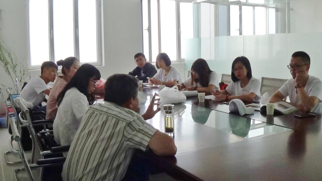 然后周董向团队成员介绍了公司的关键技术——联合麻杆分离技术,核心技术——汽爆脱胶技术,以及罗布麻/棉混纺纱技术。团队成员了解到,天益嘉华公司根据生态工程原理,将多学科、多种新技术和多产品相结合,实现了罗布麻组分的分层多级利用,创立了经济合理的罗布麻综合利用新工艺,该工艺突破了依靠单一技术或单一组分利用的技术路线,创立经济合理的罗布麻综合力利用新技术;建立了罗布麻纤维清洁脱胶,联产黄酮类化合物、低聚木糖和罗布麻杆制备生态板材的生态产业链。