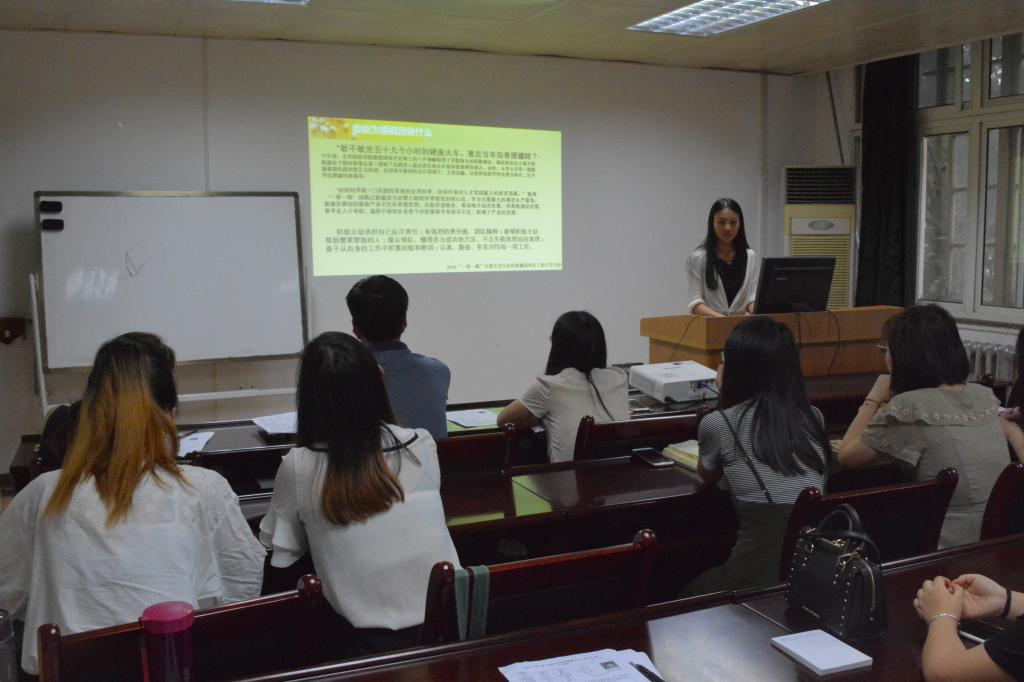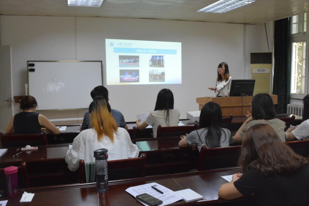 面试过程中,首先8位候选人分别上台从个人特长、能力、获奖情况、实践活动,能为援疆团做什么等方面做3-5 min的个人陈述。每位员工陈述结束,三位老师都会就每位员工的个人情况做一些提问或者提出一些建议。如王进美老师对员工社会实践、专业水平等方面有很多提问,郭西平老师就员工演讲站姿,着装等方面提出了宝贵的意见。员工们虚心接受老师们的指导,受益匪浅。