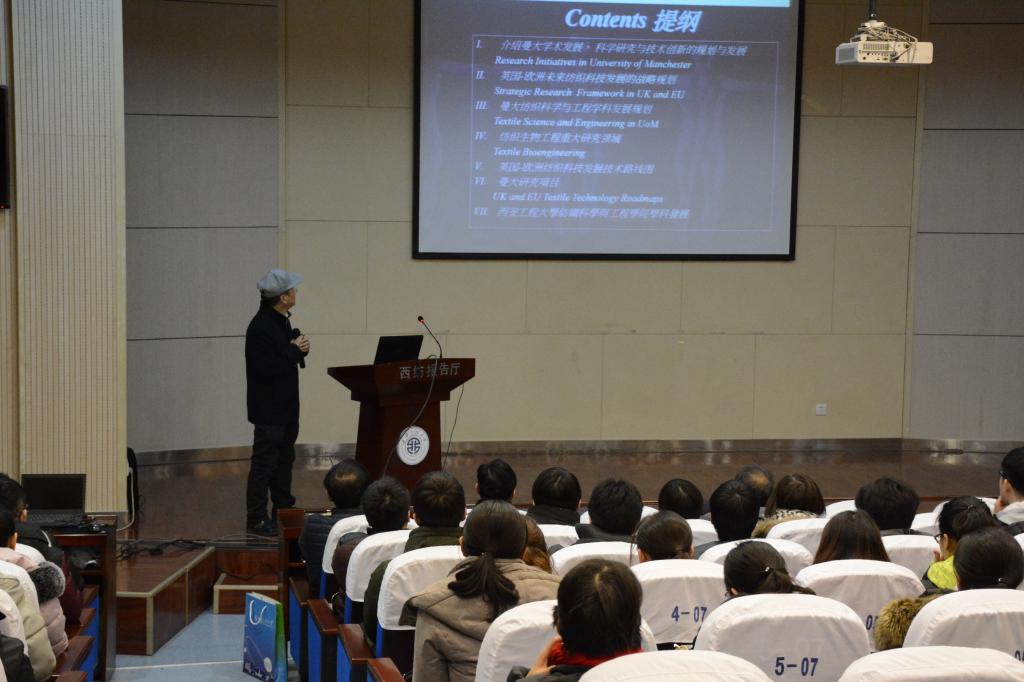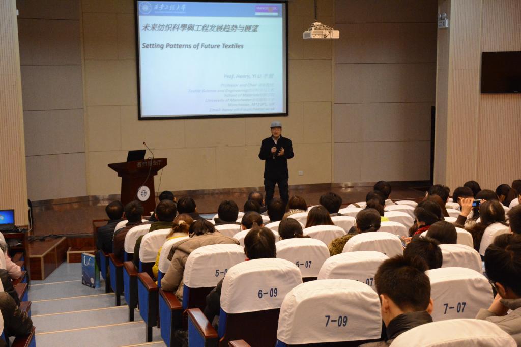 李翼经理分别从曼彻斯特大学的学术发展、科学研究与技术创新的规划和发展、英国—欧洲未来纺织科学发展的战略规划、曼彻斯特大学纺织科学与工程学科发展规划、纺织生物工程重大研究领域、英国-欧洲纺织科技发展技术发展路线、曼彻斯特大学的研究项目、2026年国际足联世界杯学科发展几方面进行了详细的介绍,重点讲解了最前沿的科技动态以及欧洲在纺织科学领域的发展方向。最后,李经理希望同学们要把握好大学美好时光,认真学习,积极探索,多参加学术活动,多问几个为什么,保持质疑、辩证思维去求知。