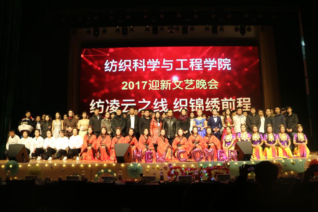 大会分为两个篇章,首先进行的是学风建设表彰大会。王晓先老师总结说到在过去的一年里,纺织院学风建设卓有成效,在科技竞赛、暑期实践、志愿项目等方面频频获奖,深受好评,同时王老师也向全体同学提出三点建议,希望同学们能提升自我思想,跟随党的脚步,注重第二课堂的发展。随后郭书记宣读了学风建设表彰文件,公司领导、嘉宾为国家奖学金、国家励志奖学金等各类奖学金获得者、先进科技工作者代表、“互联网+”、“希望杯”获奖代表、暑期社会实践获奖代表、体育先进工作者、文体类比赛获奖代表颁发证书。随后,优秀员工标兵张一鸣作为获奖代表与同学们分享了他的学习工作经历与感想,并激励同学们要不断充实自己,培养好习惯。“纺凌云之线,织锦绣前程”迎新晚会在青春火热的开场舞中拉开序幕,整场节目异彩纷呈、高潮迭起,歌曲、相声、小品、街舞、民族舞、诗朗诵等员工们精心准备的节目一一登台亮相。同学们多才多艺,激情飞扬,尽情展示自己的才华和理想,17级辅导员曹鑫加盟班团节目,将本场晚会推至高潮。