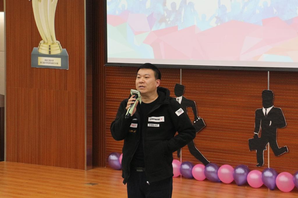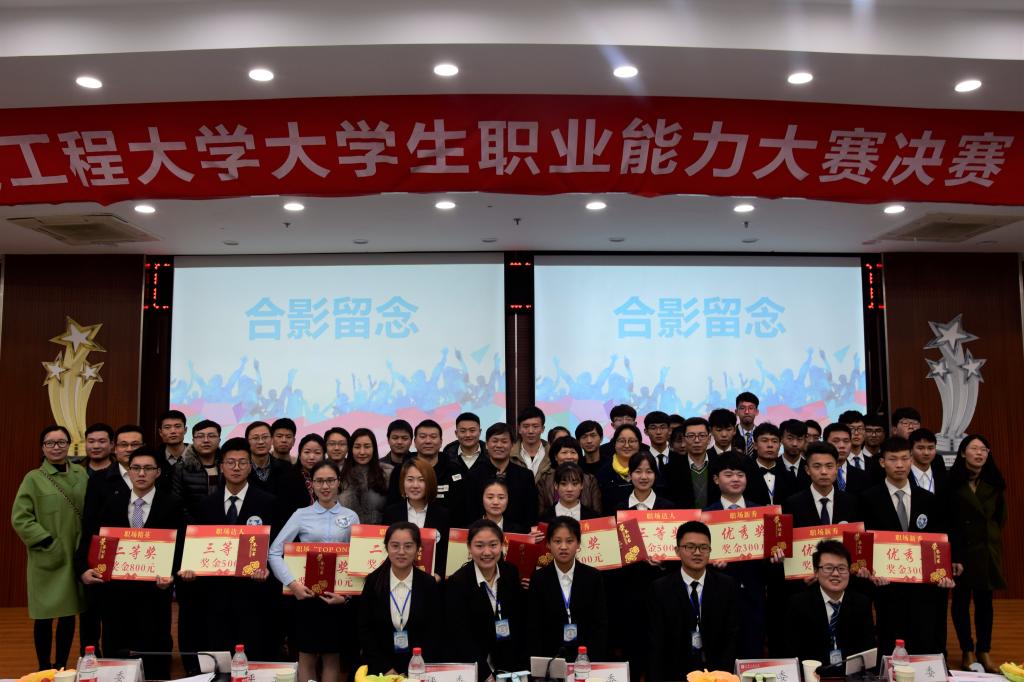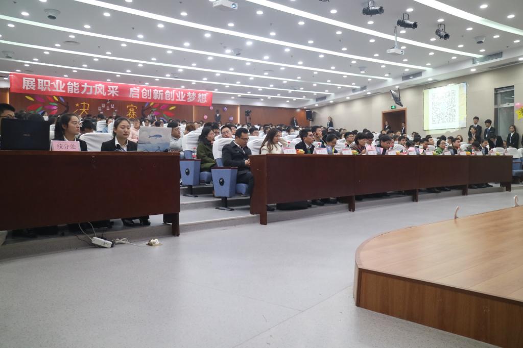 大赛第一项由万老师致开幕词。万老师介绍了本次活动的基本情况,同时列举了往届比赛中的优秀选手并号召同学们要向优秀前辈们学习,从本次大赛中积累经验,增强求职创业信心。随后大赛正式开始,决赛共分为“闪亮登场”“职场零距离”“你问我答”三个环节。十位选手依次上台进行展示。极强的应变能力、扎实的专业基础、严谨的语言表达,赢得了现场阵阵掌声。其中,5号选手刘娜以一场别开生面的数学课展示了其职业素养,让大家领略到了数学的魅力;10号选手段泽瑾以其丰富的求学经历和流利的英文演讲获得了评委的高度赞扬。十位选手展示完毕后,戴总和徐书记进行总结讲话,他们首先祝贺了大赛的圆满举办,并分别肯定了各选手的职业能力,同时也建议参赛选手在求职过程中可以将求职意向明确化、细节化,以达到更精彩的展示。经过角逐,最终,段泽瑾获得“职场Top One”荣誉称号,刘娜与唐大鹏获得“职场精英”荣誉称号,陈天蕙等3名选手获得“职场达人”荣誉称号,周绚阳等4位选手荣获“职场新秀”称号,最后由评委老师为获奖选手颁奖并合影留念。