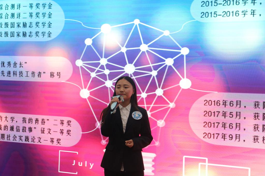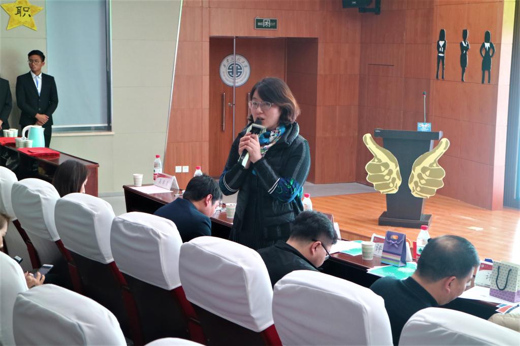 复赛分两组进行,设有“自我展示”、“问答环节”两个环节。选手们用针对性且多元化的自我推荐、有思想有深度的答辩向评委们证明了自己的实力。在第一环节中选手们展示自己精心制作的ppt并进行演讲,评委们针对选手的ppt提问,选手们自信大方的台风博得了现场观众的阵阵掌声。第二环节评委根据选手的应聘职位以及选手们的现场表现进行了细致而中肯的分析点评,使选手们获益匪浅。其中来自人文公司求职应聘对外汉语教学的段泽瑾首先以一段流利的英语演讲获得了评委老师的赞扬,接着用她丰富的社会经历和精彩的个人简介赢得了老师的青睐。随后戴总进行总结点评,他鼓励同学们要多参加活动,增加自身参赛经验。经过紧张激烈的角逐,段泽瑾等十位同学晋级决赛。最后,老师向晋级选手颁发晋级卡并合影留念。