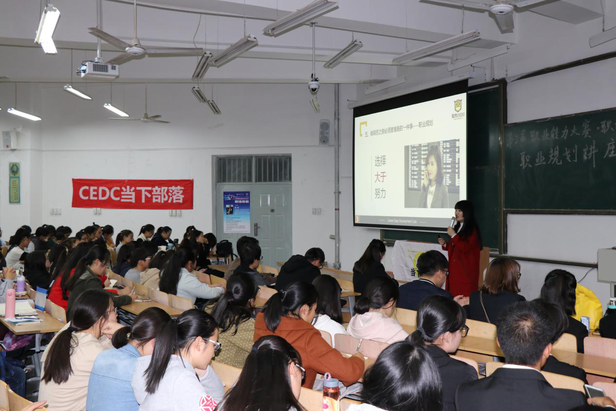 讲座正式开始前,CEDC当下部落工作人员对会场进行了前期布置并对多媒体设备进行了调试,使得讲座得以顺利开展。讲座开始后同学们认真听讲,并与嘉宾进行积极互动。赵丹女士首先从数据出发,分析了当下老员工就业的问题,然后从自我认知,行业认知,确定目标,提升能力,资源平台,参加面试等几个方面引导同学们进行分析,结合当前情况,给予同学们就如何做职业规划指导和帮助,然后,赵丹女士详细的介绍了简历的书写原则及注意事项,向同学们分享了一份好的简历该如何书写的经验!