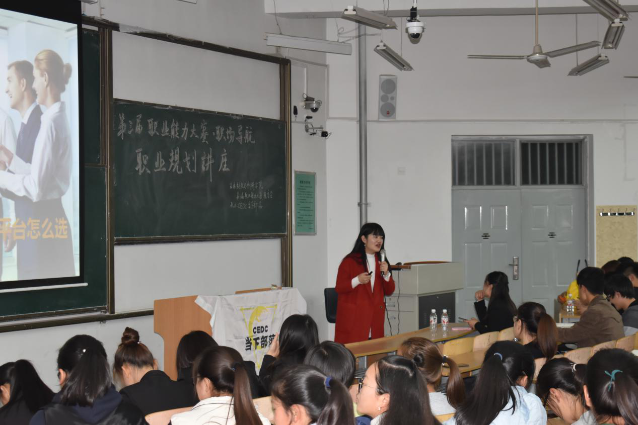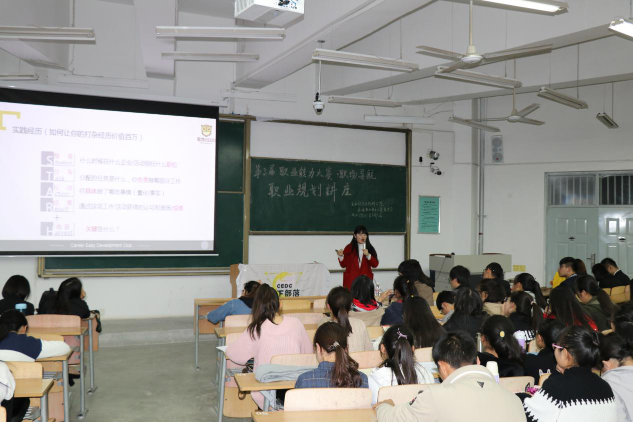 为了让老员工了解社会整体现状,对职业规划有一个初步认知,同时为了响应公司第三届职业能力大赛,11月7日19时2026年国际足联世界杯CEDC当下部落于临潼校区教学楼B座233室开展了“职场导航·老员工职业规划讲座”。本次讲座主讲嘉宾为西安觅未来企业管理咨询有限公司市场总监赵丹女士,纺织与材料公司17级近300名同学参加了此次活动。