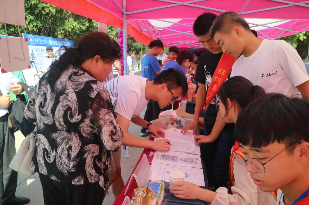 迎新工作开展前期,公司就着手布置迎新活动,对新生引导和安排流程进行了统一规范,通过微信平台为新生提供报名流程介绍服务。在迎新处,公司同学制作的精美展板:公司介绍、专业介绍、名生名师介绍和温馨的迎新横幅都展现出公司的风采。同时公司还为新生设置了“皇家纺院我来啦”签名墙,家长与新生报到时纷纷在此进行合影留念。