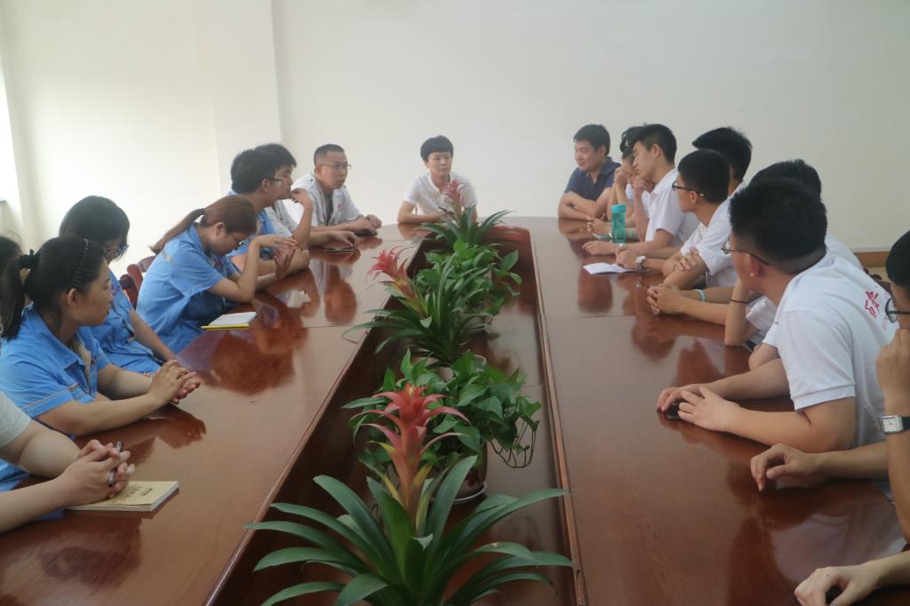 第二部分为5S培训,由综合管理部蒲启明为实践队队员培训,他从整理、整顿、清扫、清洁、素养五个方面全面解释了5S。第三部分为员工交流会,实践队队员与综合管理部邢富生部长等10名员工充分交流,了解企业情况。第四部分为安全培训,由安环李汝洲主讲,他从实际案例分析安全问题,提醒队员注意实习安全。自此,本次为期7天的暑期社会实践正式拉开了帷幕。