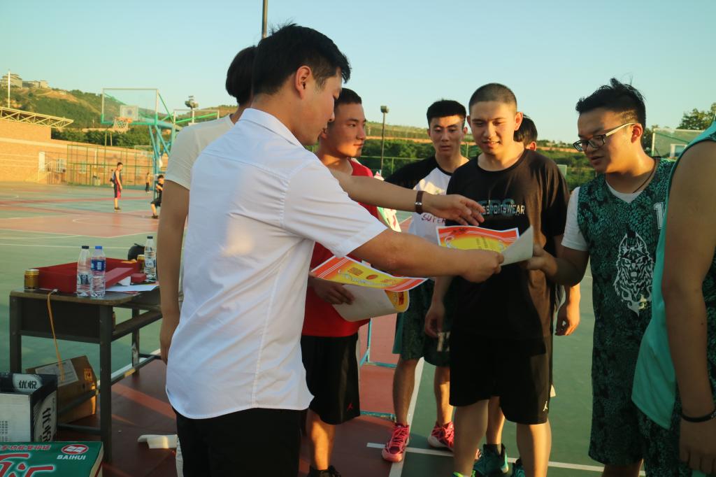 此次比赛随着裁判的一声哨响拉开了序幕。比赛一开始,双方队员迅速投入战斗,展开了激烈的角逐。双方球员都发挥了的全部本领,铜墙铁壁般的防守,闪电般的突破,精准的投篮,一次又一次引爆现场的气氛。球队员们个个英姿勃发,与对手争锋相对,一轮轮的进攻与防守也格外精彩。经过这几轮精彩对决,最终无兄弟不篮球队、菜鸟队、星际最强战队脱颖而出分别斩获了此次比赛的一、二、三名,并由邓老师进行颁奖留影。