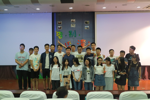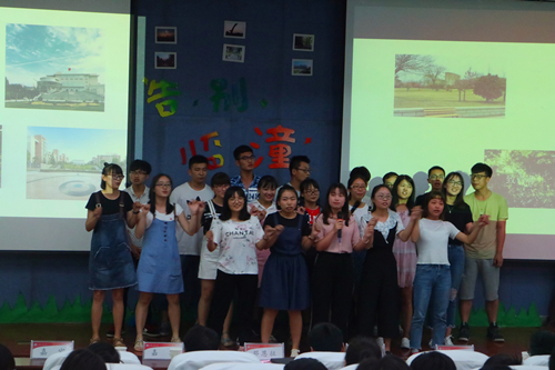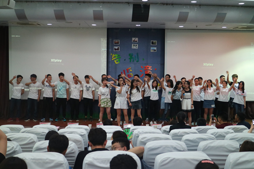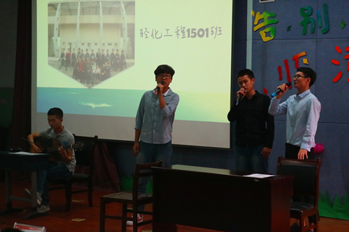 晚会伊始,马老师上台致词,他以深情幽默的话语回忆了在临潼的过往,表达出对临潼校区的不舍。同时他为15级同学们送上了“重新开始”、“从容不迫”、“从一而终”这三个词语,对同学们提出新的希望,在新的环境中继往开来。随后视频展播正式开始,团学科视频展播带同学们领略了主席团的不凡风采。各班视频展播与节目展演也依次进行,有搞怪逗趣、有温情动人,但不变的都是同学们对临潼校区不舍的情谊。展播结束后,老师们与各班团成员进行合影留念,为晚会划上一个完美的句号。