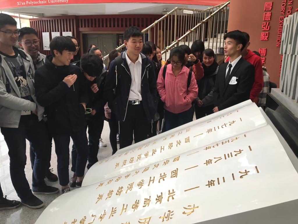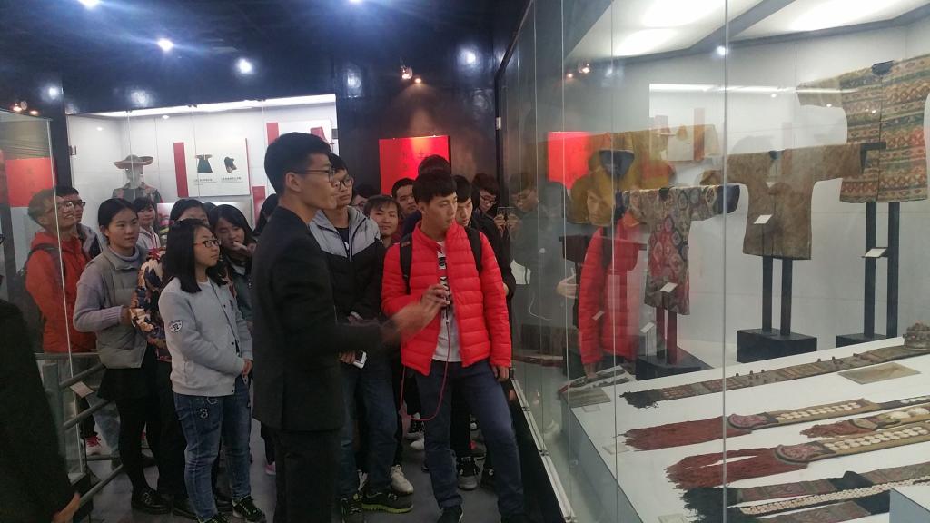 纺织博物馆分为校史馆和三个纺织工艺展馆,即纺织科普馆、西部民族民间服饰馆、现代服饰馆。校史馆展示了公司各阶段的历史发展,纺织工艺展馆中通过大量的图片和实物展示了公司在纺织工业上取得的成果,其中包括西北地区民族民间服饰、知名青年设计师设计的服饰等。领队和各展馆讲解员的细心解说让前来参观的同学通过视觉、听觉等方面全方位感受了纺织文化的魅力。