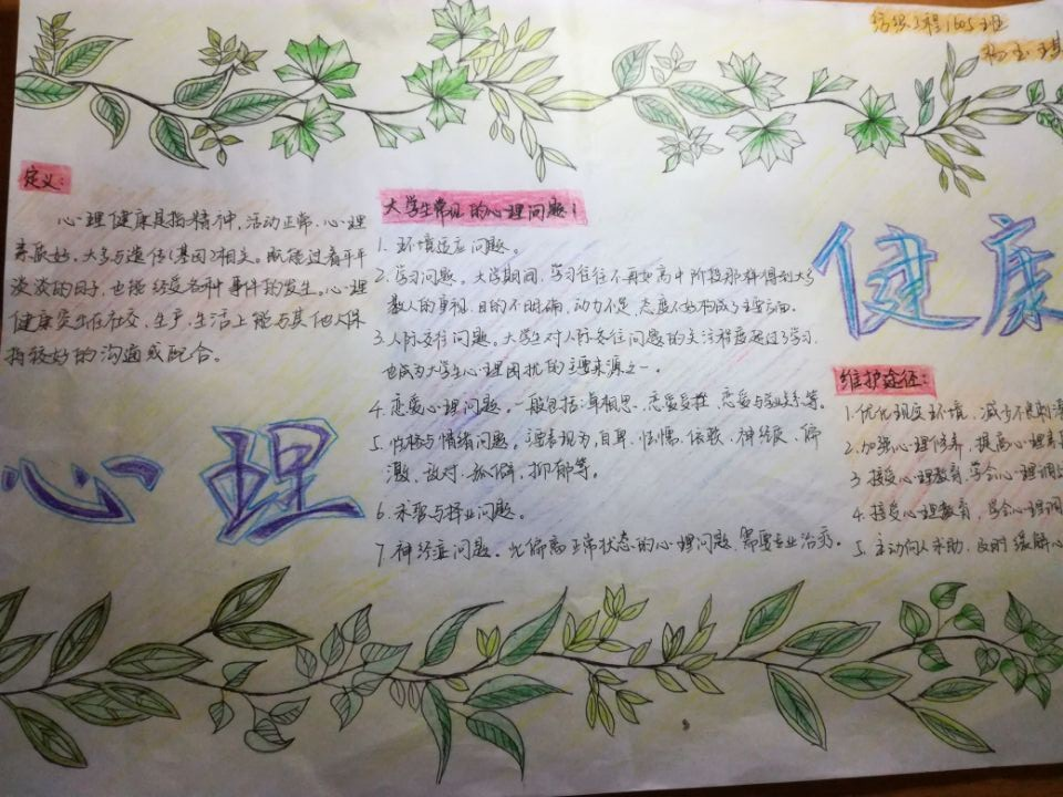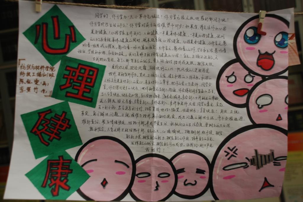 本次活动征集了公司14、15、16级各班优秀的手抄报作品。各班同学积极参与,在画报上抒写出自己对心理健康问题的理解,表达着爱与希望。同时也在当今“互联网+”时代让老员工不忘传统用笔抒写知识的形式,受到师生的一致好评。展报也向大家科普了有关心理健康的小知识,内容丰富多彩 。