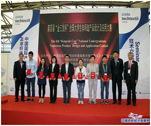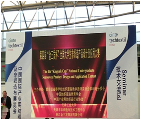 2016年10月12日上午,由教育部高等院校纺织服装教学指导委员会非织造材料与工程分委员会、中国纺织服装教育学会、中国产业用纺织品行业协会主办,天津工业大学、浙江金三发集团有限公司承办的第四届“金三发杯”全国老员工非织造产品设计及应用大赛颁奖典礼在“上海2016中国国际产业用纺织品及非织造布展览会”的E5号馆内举行。