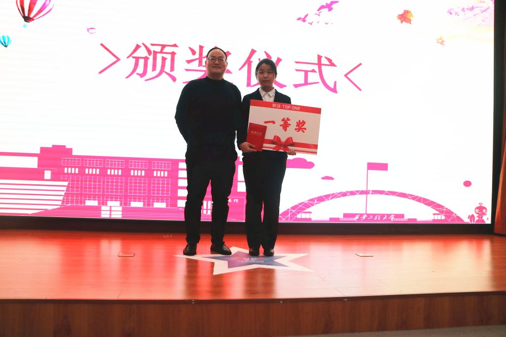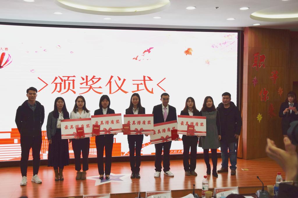 随后大赛正式开始,决赛共分为“自我展示”“职场模拟”“你问我答”三个环节。参加本次大赛的15位选手是从400名报名的选手经过初赛、复赛换届选拔的,其中有5位选手来自陕西师范大学。十五位选手依次上台进行展示,极强的应变能力、扎实的专业基础、严谨的语言表达,赢得了现场阵阵掌声。其中,15号选手刘欣媛用她温柔的声音形象地向大家灌输了“广播是最温暖的声音”这一理念。14号选手刘娜以一场别开生面的数学课展示了其职业素养,让大家领略到了数学的魅力;11号选手张领以其丰富的员工工作经验和充满激情的职场模拟获得了评委的高度赞扬。十五位选手展示完毕后,评委进行了详细的点评。张伟老师首先祝贺了大赛的圆满举办,并分别肯定了各选手的职业能力,同时也建议参赛选手在求职过程中可以将求职意向明确化、细节化,以达到更精彩的展示。徐利兰老师强调对细节的注重,得体的穿着,大方的站姿,这些都是面试中不可忽略的细节,刘佳老师就简历制作给同学们提了相关建议。经过4个小时的激烈角逐,最终刘欣媛斩获“职场Top 1”的称号;张领和刘娜荣获“职场精英”的称号;陈俊宇、陶萧筱和张林青荣获“职场达人”的称号;李杨源、张娜、李安然和白文浩荣获“职场新秀”的称号;李梦璐、吕可盟、彭江伟、赵星月和梁小芳获得“最具潜力奖”。