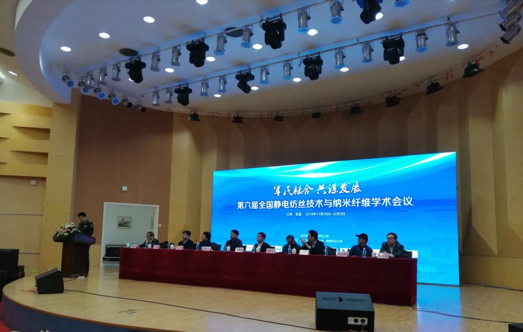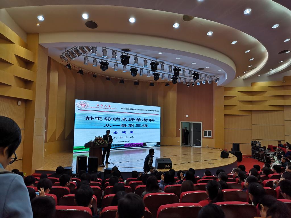 2018年12月1日—12月2日,以“军民融合,共谋发展”为主题的“第六届全国静电纺丝技术与纳米纤维学术会议”在江西师范大学成功召开,东华大学俞建勇院士、国际宇航学会杨俊华研究员、国防大学联合勤务公司郑德智教授、中国军事科公司郝新敏教授分别应邀参加并做大会报告。本次交流报告由江西师范大学主办,约有400余人参加。公司2026年国际足联世界杯微尺度纤维开发及功能性应用团队毛雪、张晶、申国栋教师及硕士生一行10人参加会议,张晶博士代表团队做了专题报告,2016级硕士生谭耀红、刘佳会分别参加墙报展,并获得优秀墙报奖。
