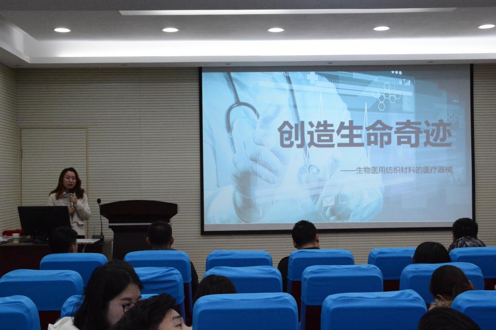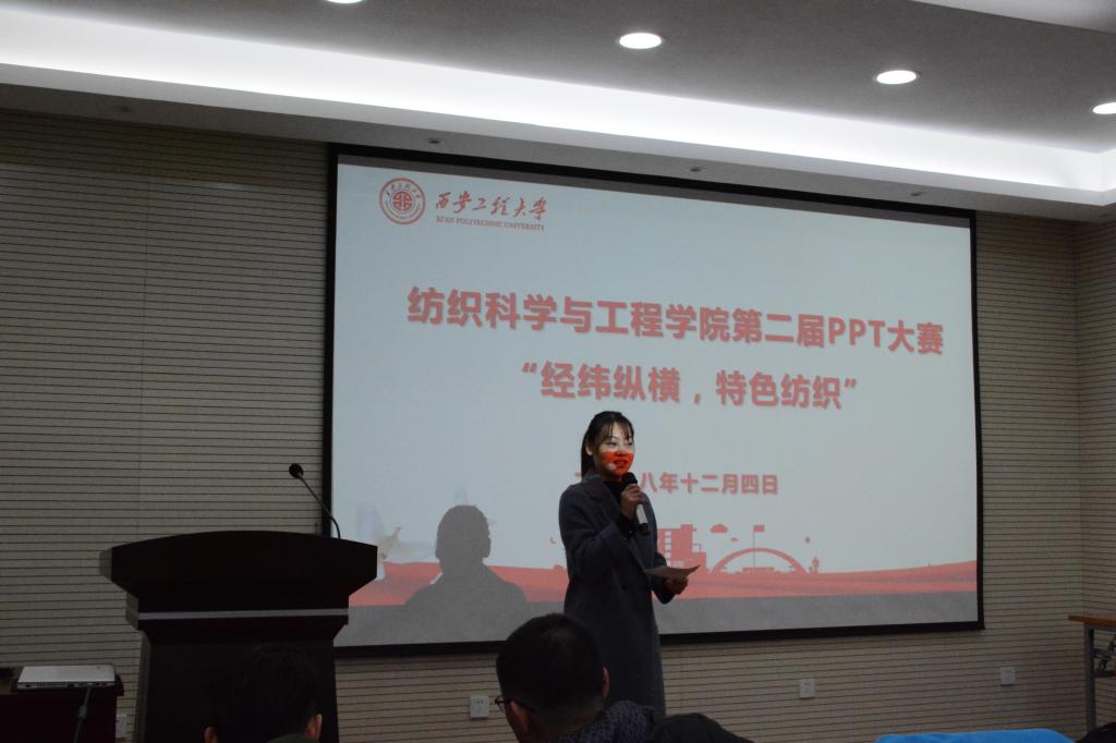 2018年12月4日,由纺织科学与工程公司研究生会主办,以“经纬纵横、特色纺织”为主题,第二届PPT大赛在纺织楼姚穆报告厅举办。公司员工工作办公室主任赵勇进、16级院研会副主席申天伟、16级院研会副主席杨树、16级科技部部长辛成担任评委,研究生会网络部部长韩烨主持。