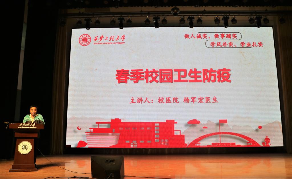 接着,杨军宏通过深入浅出的理论讲解和生动的实例从传染病类型、传染途径、易感人群及预防措施四个方面向同学们宣传普及了肺结核、腮腺炎、水痘、风疹、麻疹、疱疹、流感等春季常见传染病的预防知识,并发放了宣传资料。
