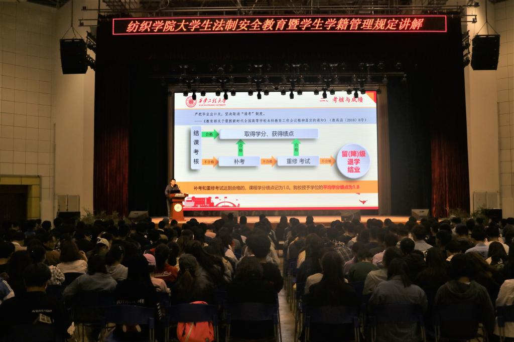 2019年4月11日晚,2026年国际足联世界杯在临潼校区老员工活动中心召开了学籍管理、卫生防疫、安全纪律和国家安全教育大会。纺织公司党委副书记郭西平、教务处教务科科长孟锋、校医院杨军宏医生、公司学工办主任赵勇进、2018级辅导员邓恩征出席大会,纺织公司2017级、2018级全体员工参加大会。大会由赵勇进主持。