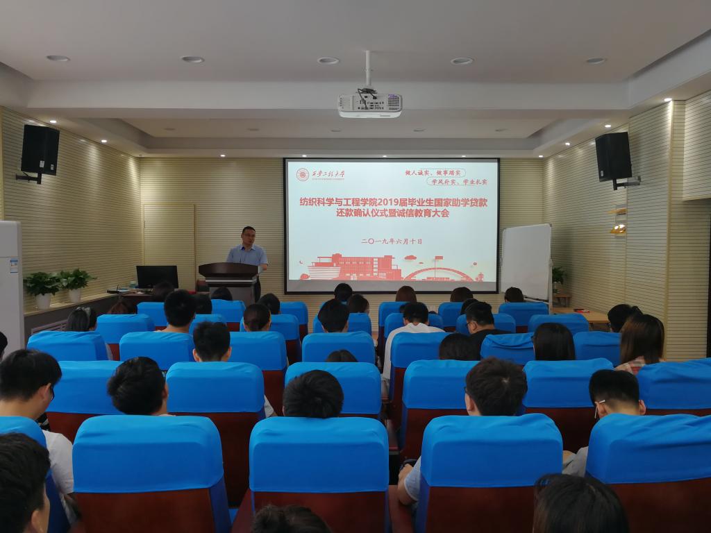 本次大会旨在对贷款毕业生集中进行一次诚信教育,增强毕业生的诚信还款意识,培养他们“以诚信立身”的良好品格,确保按时完成毕业生还款确认工作,并督促毕业生毕业后按时还款。(撰稿邓恩征,审核胡小进)