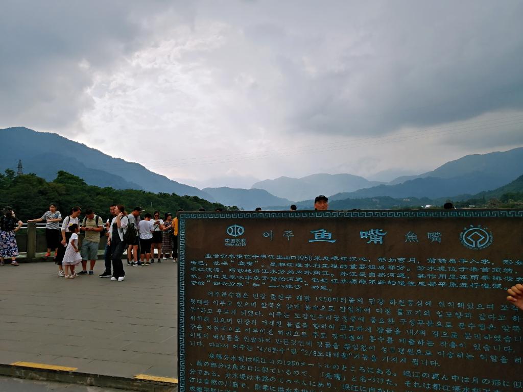 第二站—都江堰:踏着疲惫的步伐,我们到了都江堰,顺江而去,一眼目睹都江堰的绝美风采。都江堰是一个防洪、灌溉、航运综合水利工程。李冰采用中流作堰的方法,在江中建设建筑,将水流一分为二。在岷江峡内用石块砌成石埂,叫都江鱼嘴,也叫分水鱼嘴。鱼嘴是一个分水的建筑工程,把岷江水流一分为二。东边的叫内江,供灌溉渠用水;西边的叫外江,是岷江的正流。内江自宝瓶口以下进入密布于川西平原之上的灌溉系统,旱则引水浸润,雨则杜塞水门。保证了大约300万亩良田的灌溉,使成都平原成为旱涝保收的天府之国。都江堰的规划、设计和施工都具特色,是一个科学、完整、极富发展潜力的庞大的水利工程体系,是巧夺天工、造福当代、惠泽未来的水利工程,是区域水利网络化的典范。不禁心想,古人的智慧让人叹为观止!