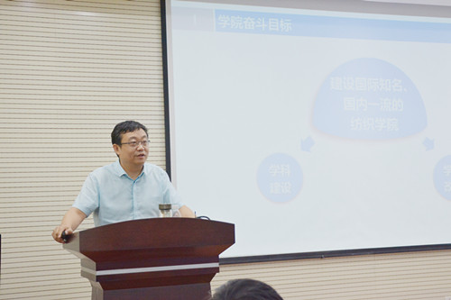 首先,副董事长兼公司经理李鹏飞讲话,他指出,根据国内外行业发展要求和公司发展实际,公司今后一段时期发展愿景是“建设国际知名、国内一流的纺织公司”。为实现这一目标,他强调要着重做好两方面工作:一是紧紧抓住团队建设这一龙头,围绕一流团队建设标准和核心指标,全员参与,下大力气,实现突破。并对假期公司一流团队建设工作开展情况和今后重点工作进行介绍;二是统筹协调,稳步推进公司综合改革。加大团队建设力度和支持力度,抓好公司考核分配制度改革,挖掘潜力、激发活力,凝聚起公司强大的发展合力。公司的发展离不开每一位师生员工的努力和付出,在当前公司发展关键时期,他希望全体教职员工要统一思想,齐心协力,奋勇拼搏,为公司发展贡献出最大的力量。