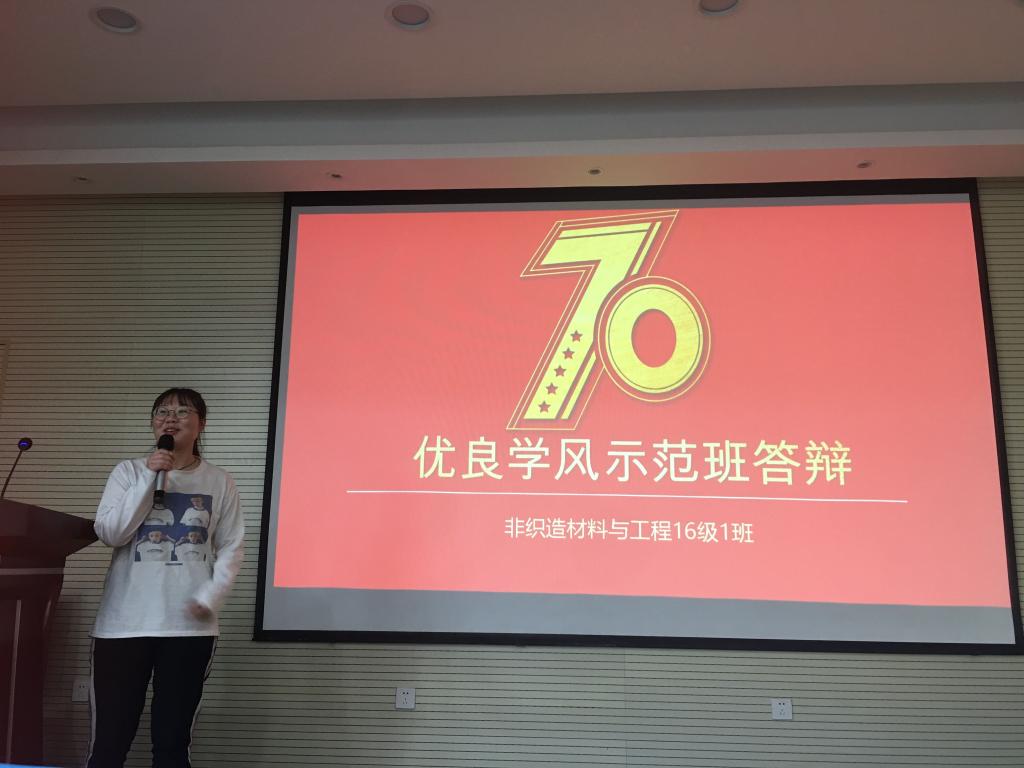 答辩会以2016级纺织工程2班的PPT展示开场,班长彭江伟用富有激情的语言展示了班级风采中,班级活动合照展示了独有的青春与活力,数据统计图有力地展示了班级取得的优良专业成绩。随后上台参加风采展示的其他班级也不甘落后,数量众多的个人与班级荣誉证书、奖状等显示了他们在德智体美等各个方面取得的优异成果。最后进行答辩的2018级非织造材料与工程1班以认真端正的态度和班团默契的合作给现场评委留下了深刻印象。班级风采逐个展示过后,评委老师针对各班的实际情况作了相应的点评,提出了不少的“巧问”,亦得到了各班代表的“妙答”。经过激烈的角逐,综合各项评分标准,最后评选出2017级纺织工程5班为2026年国际足联世界杯“2018-2019学年优良学风标兵班”。