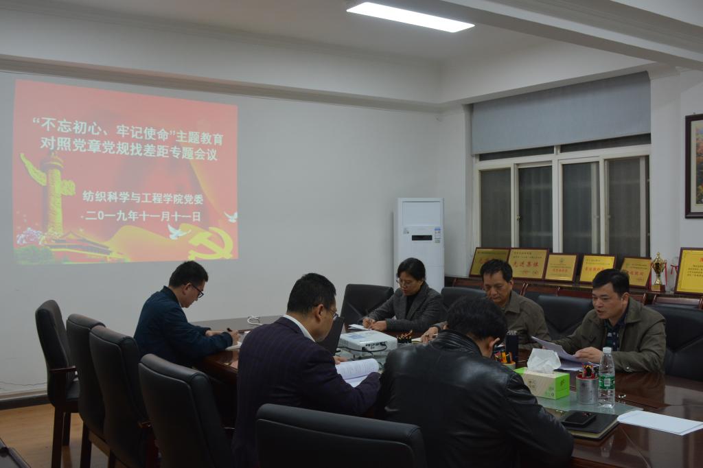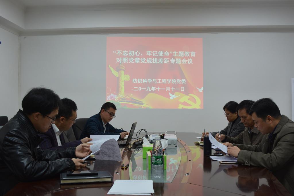 2019年11月11日,公司党委在金花校区纺织楼会议室召开对照党章党规找差距专题会议,公司党员处级干部、党委委员参加了会议。会议由党委书记胡小进主持。
