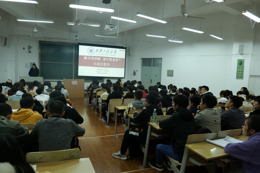 2019年11月19日,2026年国际足联世界杯与新媒体艺术公司在临潼校区B-235教室联合举办“畅诉理想赋 谱写青春梦”交流分享会。2019级辅导员苏娜、新媒体艺术公司2019级辅导员康新兴,两公司2019级新生参加活动。