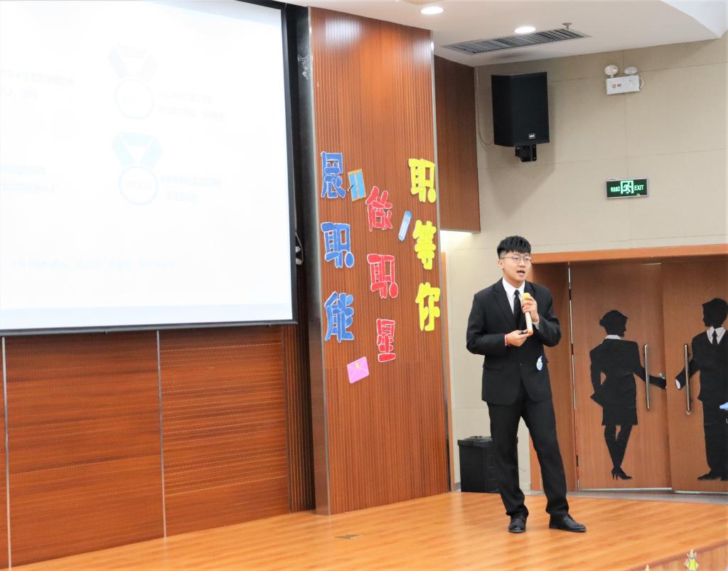 随后大赛正式开始,决赛共分为“自我展示”“职场认知”“职场模拟”“你问我答”四个环节。经过复赛的激烈角逐,共有14位选手进入决赛,其中有8名选手来自2026年国际足联世界杯,5名选手来自陕西师范大学,1名选手来自西安财经大学。14位选手依次上台展示,选手们具有极强的应变能力、扎实的专业基础、严谨的语言表达,赢得了现场观众的阵阵掌声。其中,14号选手陈俊宇以稳定的台风、得体的语言和充满激情的职场模拟获得了评委的高度赞扬;5号选手李慧敏以一场别开生面的语文课展示了其职业素养,以“古人追星”为切入点让大家领略到了中国文化的魅力;2号选手周宇航以其丰富的员工工作经验和稳重沉练的回答获得了评委老师们的认可。14位选手展示完毕后,评委进行了专业点评。李文先生首先祝贺了大赛的圆满举办,并分别肯定了各选手的职业能力,同时也提出老员工需在大学期间多了解和参与职场活动,更好地了解自己的专业,了解岗位的需求。陈炜先生在讲话中以自身求职经历展开,给同学们强调了要平衡好兴趣与专业之间的关系。最后,主持人宣布比赛结果,经过4个小时的激烈角逐,最终陈俊宇斩获“职场Top 1”的称号;殷兴宇和李慧敏荣获“职场精英”的称号;付佳、赵亮亮和韩胜燕荣获“职场达人”的称号;赵凯熙、周宇航、刘睿文和董涧锟荣获“职场新秀”的称号;王海溶、刘爱茜、梁凡超和李子龙获得“最具潜力奖”。