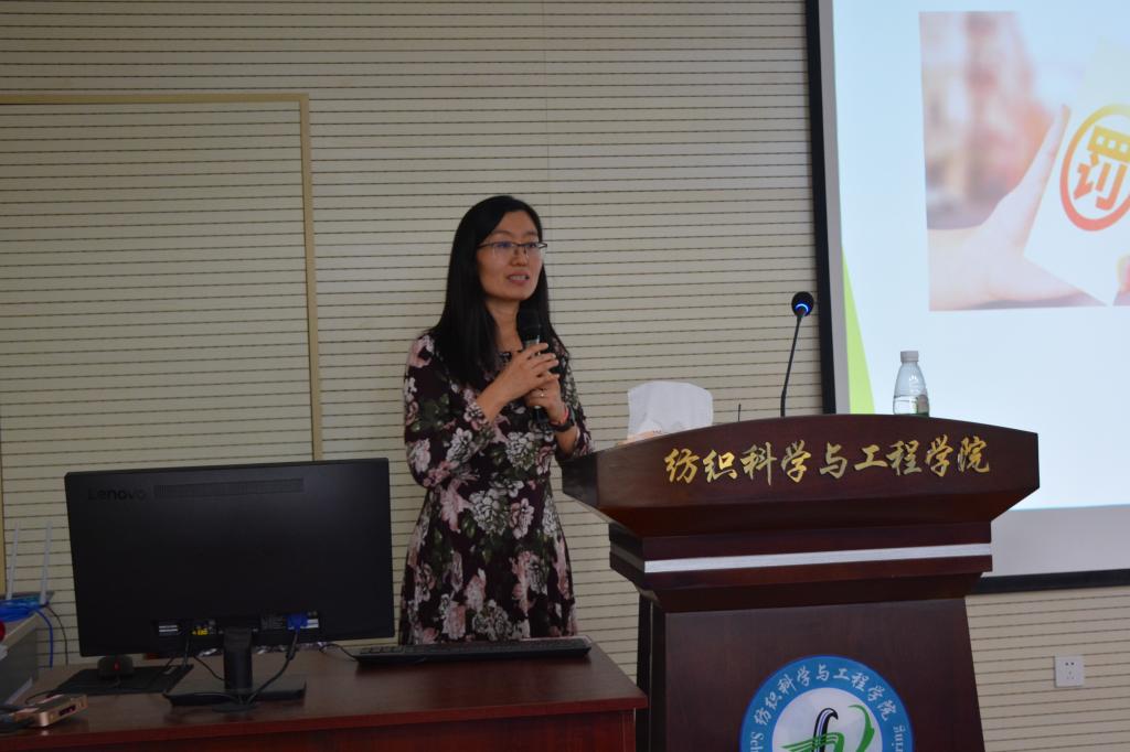 报告会上,刘伟主要围绕美国和中国这两大全球主要消费市场,对它们的服装和消费品的安全和质量法规管理体制和监督制度进行了深入讲解。首先,刘伟简要介绍了她在美国阿拉巴马州奥本大学的求学经历及其在天祥集团工作的经历。随后,她请在场同学查看衣服上的标签,并以此引出与服装相关的安全、质量、标签和注册等内容。接着,她对比了美国与中国的服装和消费品法规体系,分享了关于法规体系的执行实例,以及企业在应对标准时面临的挑战和机遇。最后,刘伟与在场同学进行了交流互动。同学们积极提问,刘伟耐心解答了同学们提出的问题和困惑,现场气氛热烈。