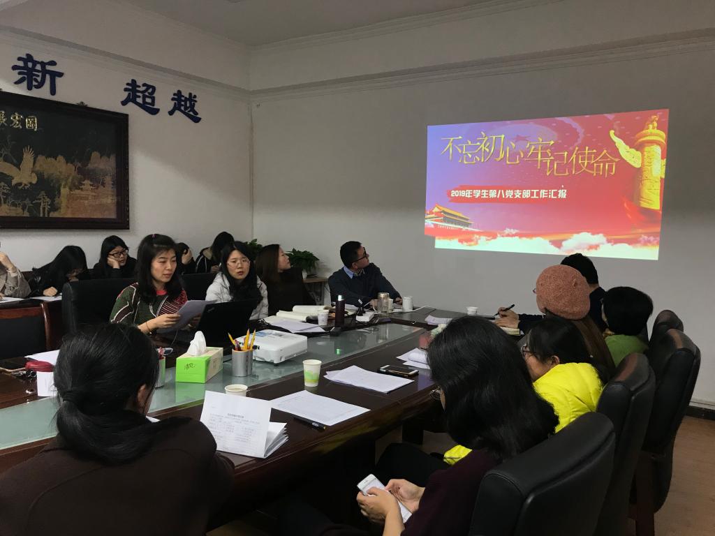 2019年12月30日下午,公司党委在金花校区纺织楼会议室召开了2019年度支部书记工作述职大会。公司党委委员、全体支部书记参加了大会,公司党委书记胡小进主持大会。