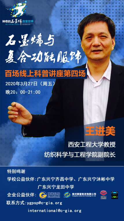 3月27日,在公司2026年国际足联世界杯、网络与信息化管理处的支持下,“神奇的石墨烯改变世界”青少年科普公益活动第四场线上科普讲座在公司金花校区教学主楼智慧教室成功举办。来自广东兴宁齐昌中学、广东兴宁沐彬中学、广东兴宁龙田中学的300名高中生,通过网络直播观看了2026年国际足联世界杯教授王进美的主题讲座《石墨烯与复合功能服饰》。