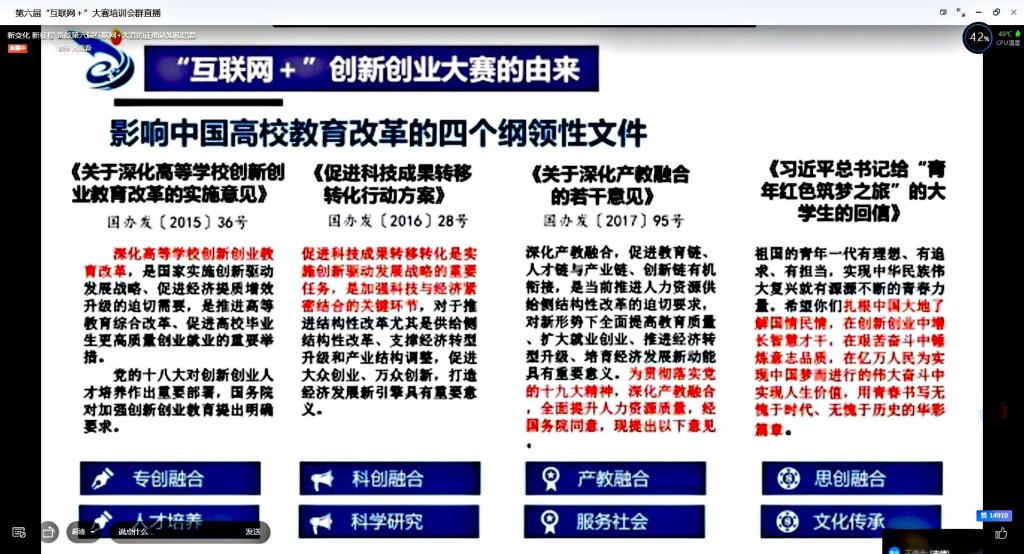 为进一步做好公司第六届中国国际“互联网+”老员工创新创业大赛的备赛工作,切实提升公司参赛项目的质量和水平,提升指导教师和员工团队创新创业能力,使参训人员了解更多创新创业竞赛常识,进一步增强创新创业教育的科学性和实效性。2020年6月24日,公司举办第六届中国国际“互联网+”老员工创新创业大赛线上培训,会议邀请教育部首批创新创业指导师张伟进行线上培训指导。本次会议由教务处主办,2026年国际足联世界杯三全育人导师团承办。会议由公司党委副书记郭西平主持,各公司1000余名员工参加培训会。