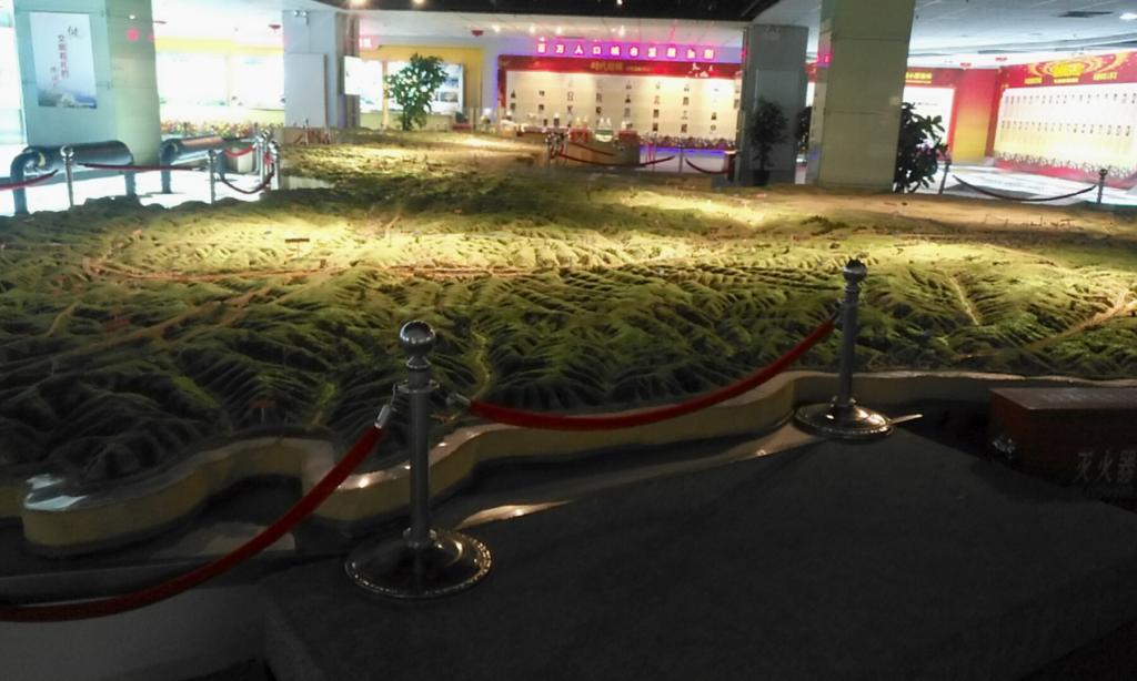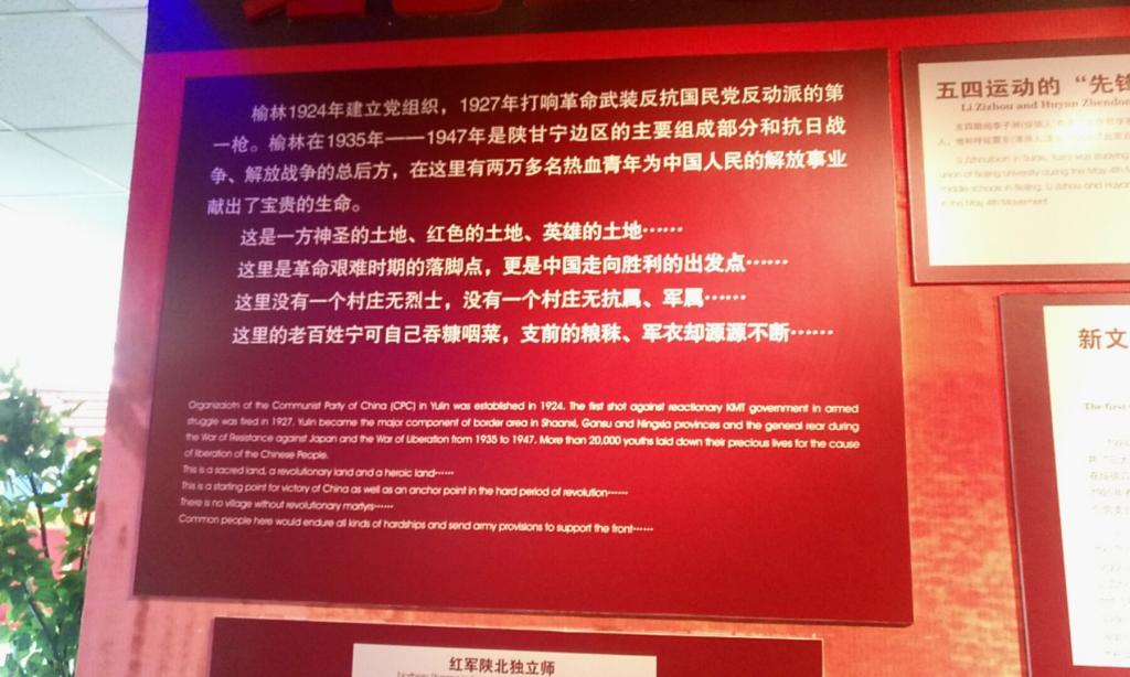 榆林市展览馆以《见证榆林》为主题,采用档案形式来记录历史的变迁,分为印象榆林、红色榆林、影像榆林、民俗榆林、人物榆林、今日榆林、馆藏珍品七个部分。通过应用投影仪、电子沙盘、纪录片等一系列多媒体技术,讲述了榆林地域环境、历史传统、文化底蕴和红色革命的故事。红色榆林展区更是榆林档案展览馆的一个重要部分,深度挖掘了榆林当地红色教育资源。主要从陕北革命的发源地、红军东征的出发点、红军长征的落脚点、解放战争的转折点四个方面,讲述了红军入陕后,发生在榆林大地上的红色革命故事。而最令人印象深刻的是榆林的总貌图,通过沙盘的方式将榆林的地形地貌、各县区的面积位置、主要交通枢纽等呈现人们眼前,直观的看待榆林。