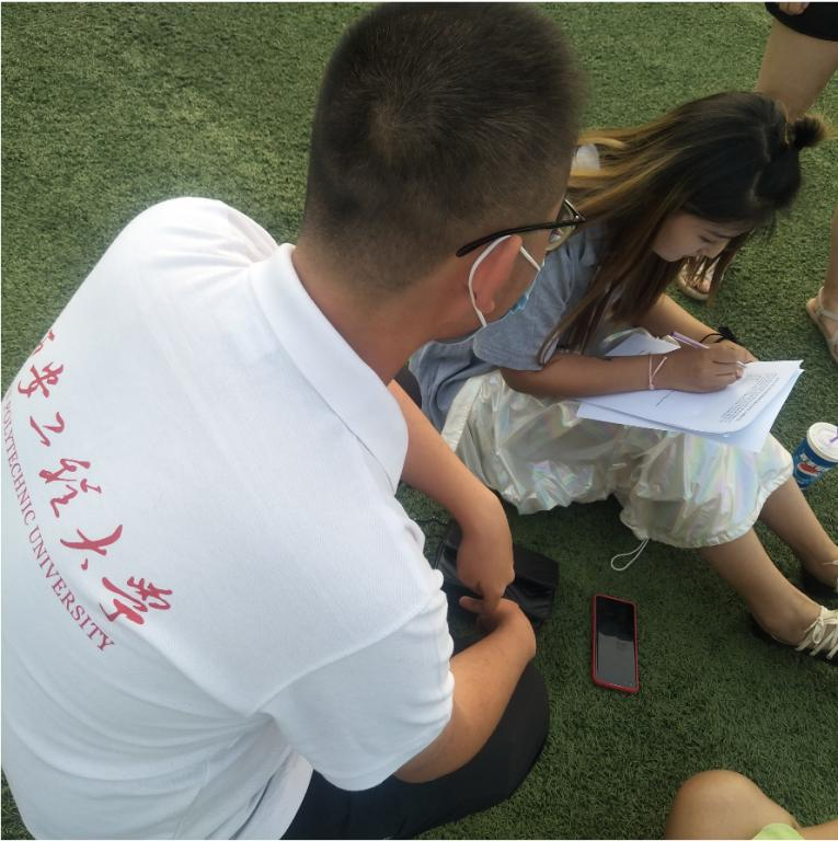 参观展览馆后,实践团随即前往世纪广场展开调研工作,对广场附近游玩的榆林市民进行了实地问卷调查,调研主题是《领悟红色精神,学习红色文化》。
