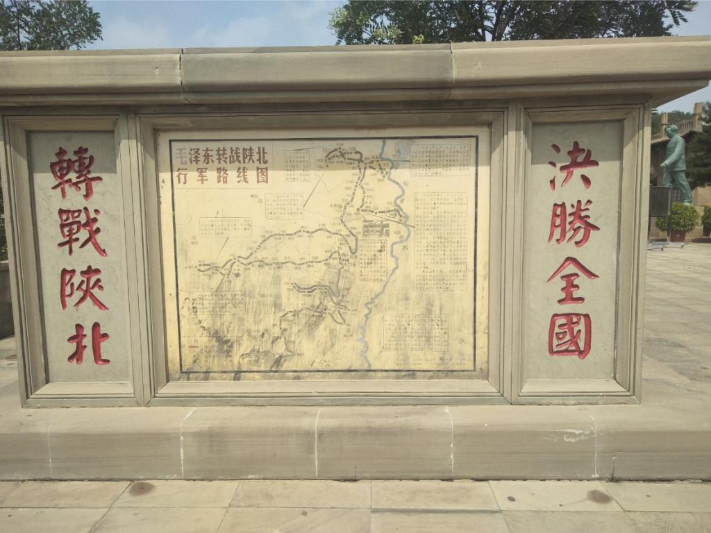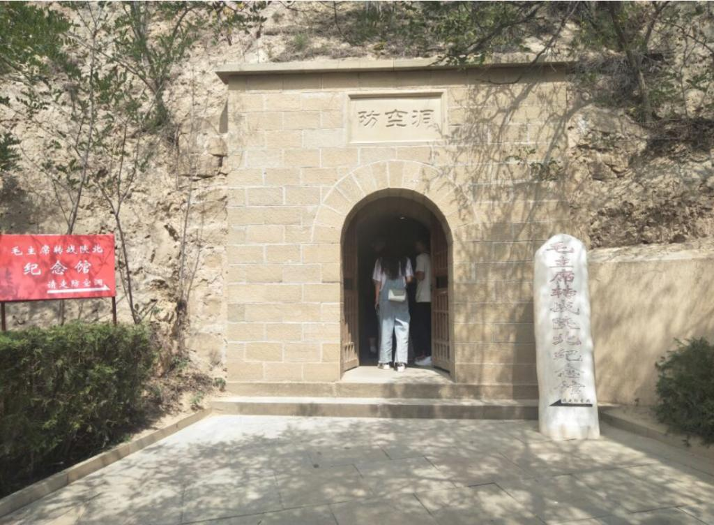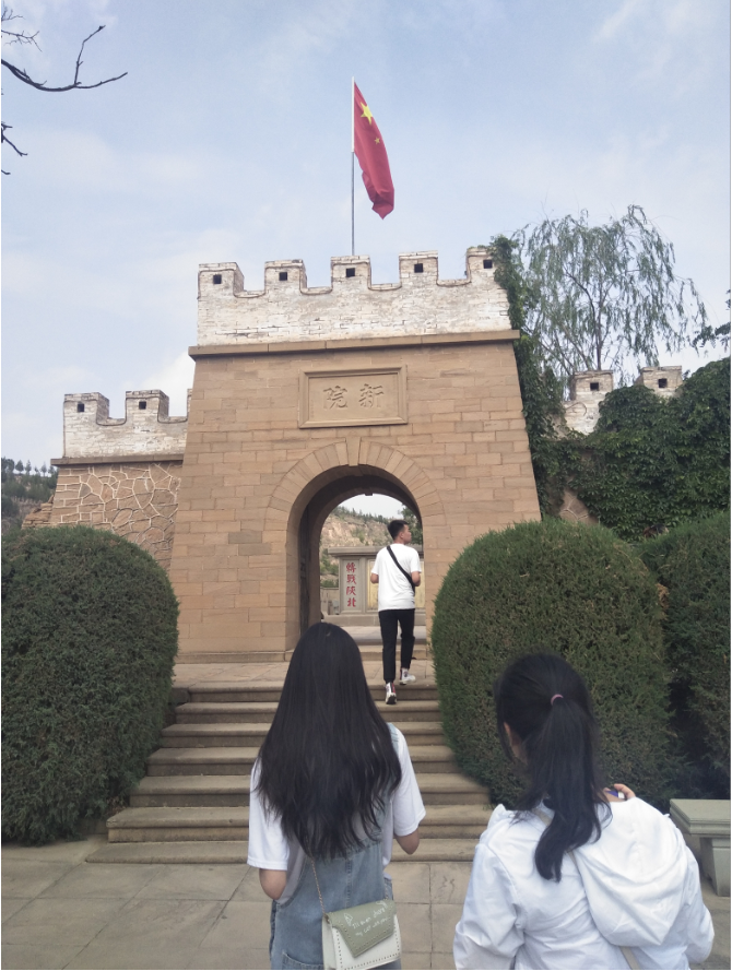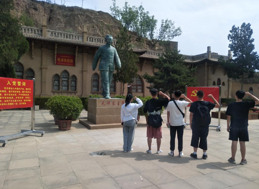 第二站,实践队来到了新院,进入院门,最先映入眼帘的是"转战陕北,决胜全国"八个大字的石碑,院子正中央是毛主席的人物雕像,雕像左侧为入党誓词,右侧为党旗,在党旗前宣誓并合照留念。接着实践队依次参观了毛主席旧居,毛主席办公室,江青办公室,会议室,周恩来旧居以及周恩来办公室等。会议室墙面上挂着毛主席语录"政策和策略是党的生命,各级领导同志务必充分注意万不可粗心大意。"实践队员们表示,从中学习到了做人做事需要脚踏实地,认真仔细,切勿着急慌忙,粗心大意。